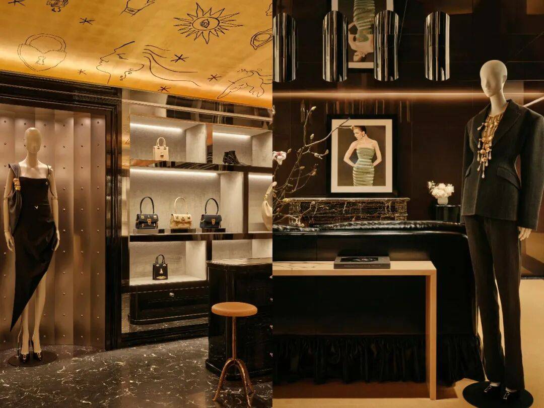 据了解,新店门店面积有1700平方英尺,由品牌创意总监Daniel Roseberry携手瑞典知名建筑事务所Halleroed建筑事务所联合设计,以巴黎总部为灵感,延续品牌标志性的金黑配色,营造出充满戏剧张力与艺术张扬的超现实主义氛围。在零售模式上,Schiaparelli并未选择传统奢侈品门店的开放式陈列,而是坚持预约制服务,延续品牌自2014年重启巴黎沙龙以来的一对一专属互动体验。值得一提的是,此次选址并非偶然,门店所在的置地广场正推进 4亿美元翻新工程,近期已吸引百达翡丽、圣罗兰等顶级品牌扎堆入驻,有望成为中环新奢侈品枢纽。